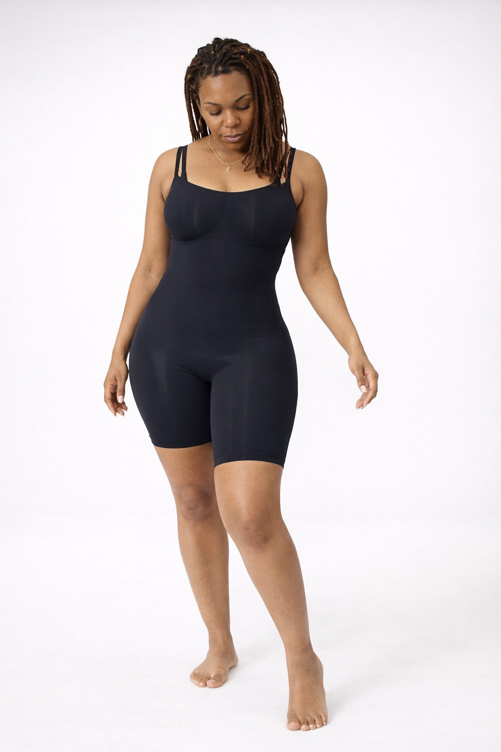 4. Full-body bodysuit targets your belly, waist, and thighs, flattens your stomach and creates and sleek line from belly to thigh
