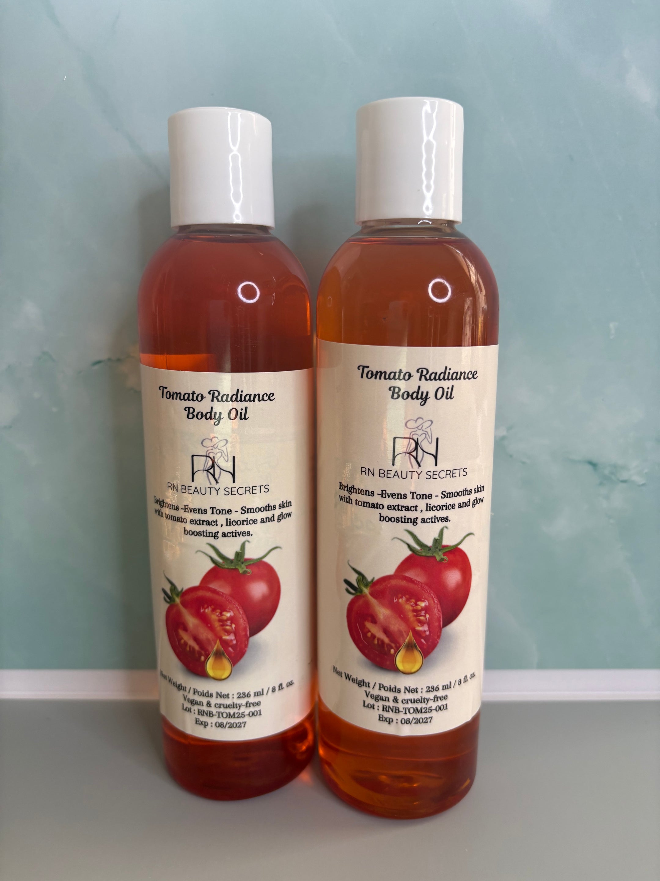 Our Tomato Body Oil is loaded with lycopene and natural antioxidants that protect against free radicals and environmental stress. Blended with moisturizing plant oils, it restores radiance, improves skin texture, and supports a youthful glow.